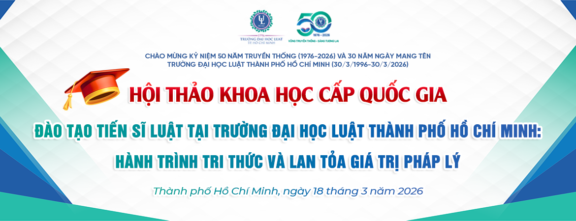 Hướng tới lễ kỷ niệm 50 năm truyền thống (1976-2026) và 30 năm ngày trường mang tên Trường Đại học Luật TP. Hồ Chí Minh (1996-2026), Nhà trường trân trọng kính mời Quý Nhà khoa học, chuyên gia, Nghiên cứu sinh và các anh chị học viên tham dự Hội thảo: