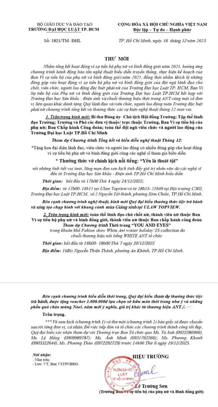 Tập huấn công tác pháp chế năm 2025 và tuyên truyền phổ biến chính sách, pháp luật của Nhà nước, của Bộ Giáo dục và Đào tạo và quy định nội bộ Trường Đại học Luật TP.HCM