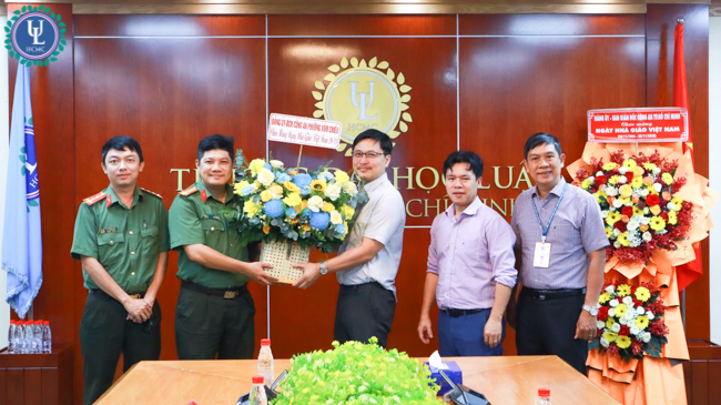 Ngày 17/11, đoàn Công an TP.HCM do Đại tá Nguyễn Đình Dương – Phó Giám đốc Công an TP.HCM dẫn đầu đã đến thăm và gửi lời chúc mừng Nhà trường. Đại tá Nguyễn Đình Dương ghi nhận đóng góp của Trường Đại học Luật TP.HCM trong đào tạo cán bộ pháp luật, đồng thời bày tỏ mong muốn hai bên tiếp tục phối hợp trong tuyên truyền, giáo dục pháp luật và các hoạt động gắn với thực tiễn ngành Công an. PGS.TS. Vũ Văn Nhiêm – Bí thư Đảng ủy, Chủ tịch Hội đồng Trường cảm ơn sự quan tâm của Công an TP.HCM và kỳ vọng mối quan hệ hợp tác tiếp tục phát triển bền chặt.