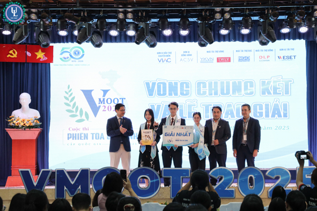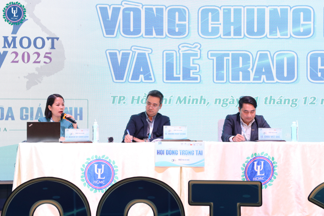 Sáng ngày 01/12/2025, tại Hội trường C.302, cơ sở Nguyễn Tất Thành, Trường Đại học Luật TP.HCM đã đăng cai tổ chức Vòng chung kết cuộc thi Phiên tòa giả định cấp Quốc gia - VMoot lần thứ IX năm 2025.