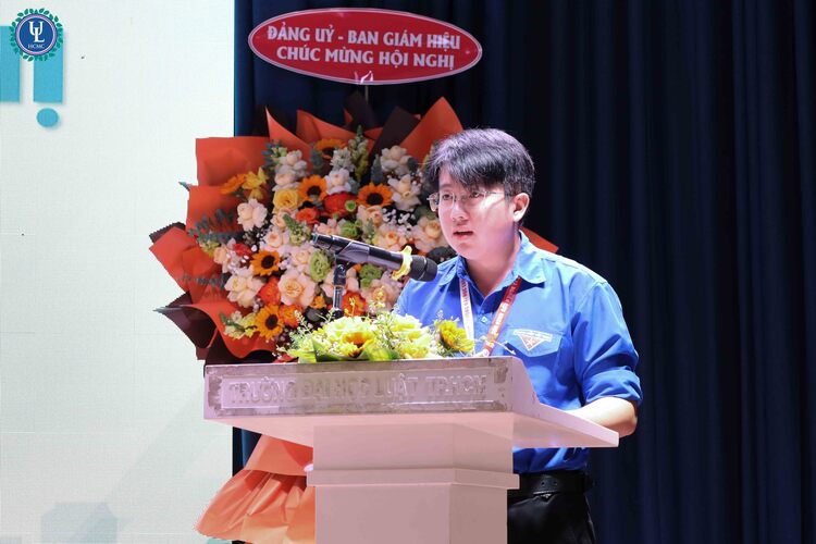 Đồng thời, đồng chí cũng trình bày báo cáo việc thực hiện Nghị quyết Đại hội Đoàn trường Đại học Luật TPHCM lần thứ XII giai đoạn 11/2024 - 11/2025. Đúc kết những ưu điểm, hạn chế trong quá trình thực hiện nhiệm vụ trong giai đoạn 2024 - 2025, đồng thời rút kinh nghiệm cho hoạt động của Đoàn trường Đại học Luật TP. HCM trong giai đoạn tiếp theo của nhiệm kỳ 2025 - 2027.