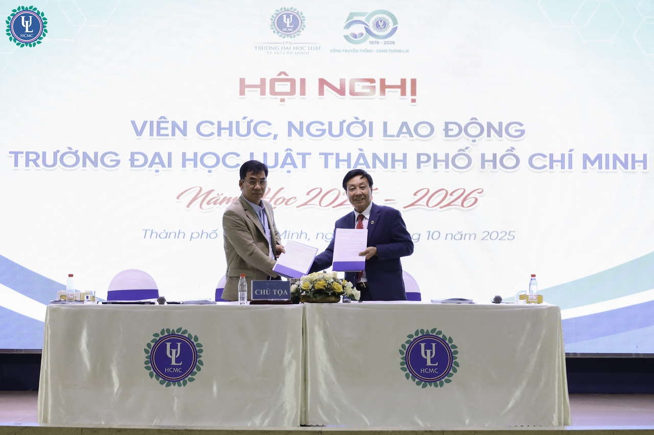 Ngày 25/10/2025, tại Hội trường C.302, cơ sở 02 Nguyễn Tất Thành, TP.HCM, Trường Đại học Luật TP.HCM (ULAW) tổ chức Hội nghị viên chức, người lao động năm học 2025–2026. Sự kiện nhằm tổng kết kết quả thực hiện Nghị quyết năm học 2024 – 2025, nhìn lại những điểm còn hạn chế để rút kinh nghiệm, đồng thời thống nhất phương hướng hoạt động và nhiệm vụ trọng tâm cho năm học 2025 – 2026 trong bối cảnh đổi mới mạnh mẽ của giáo dục đại học và đa dạng hóa mô hình đào tạo.