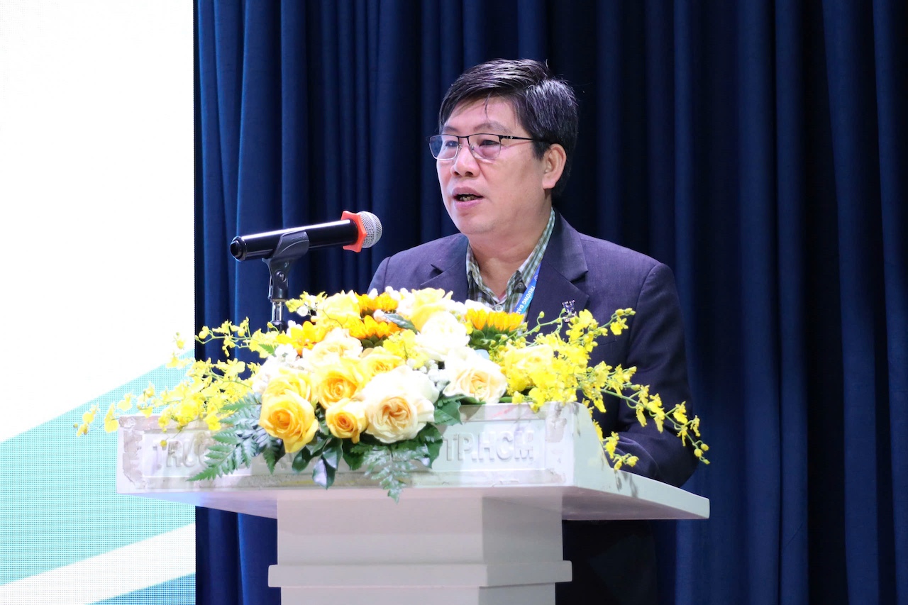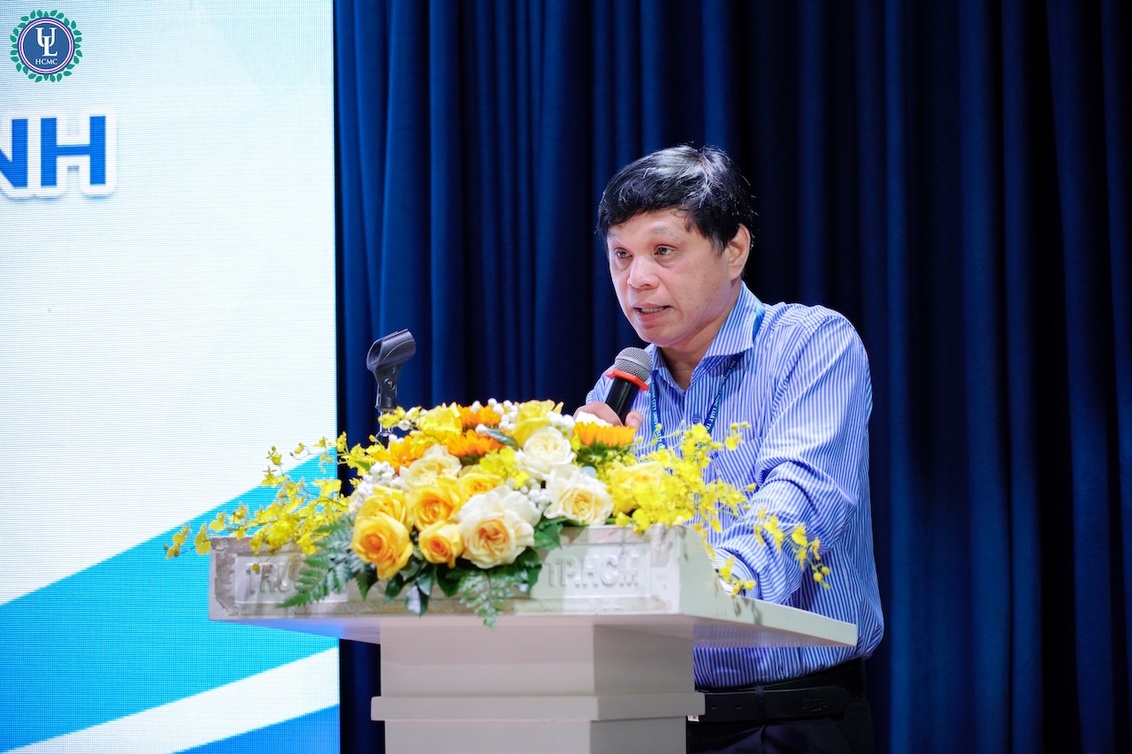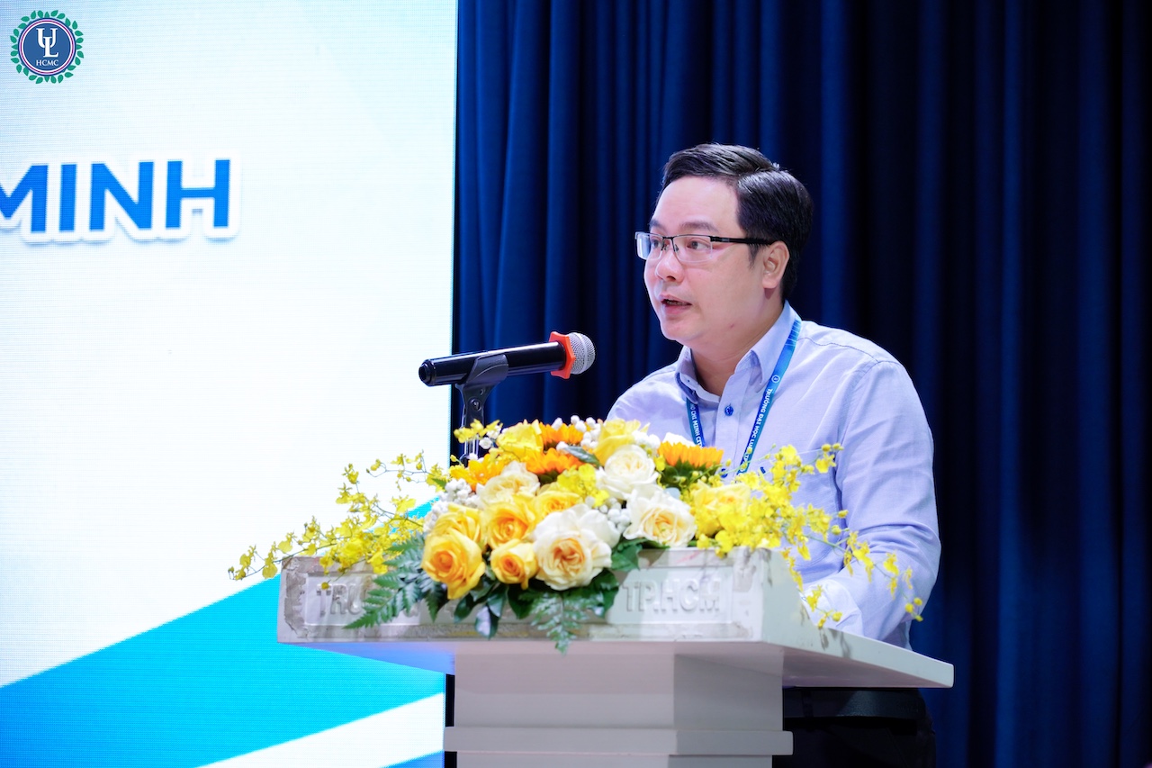 TS. Phan Anh Tuấn – Trưởng Phòng Tổ chức nhân sự báo cáo kết quả công tác thi đua khen thưởng của Nhà trường năm học 2024 – 2025