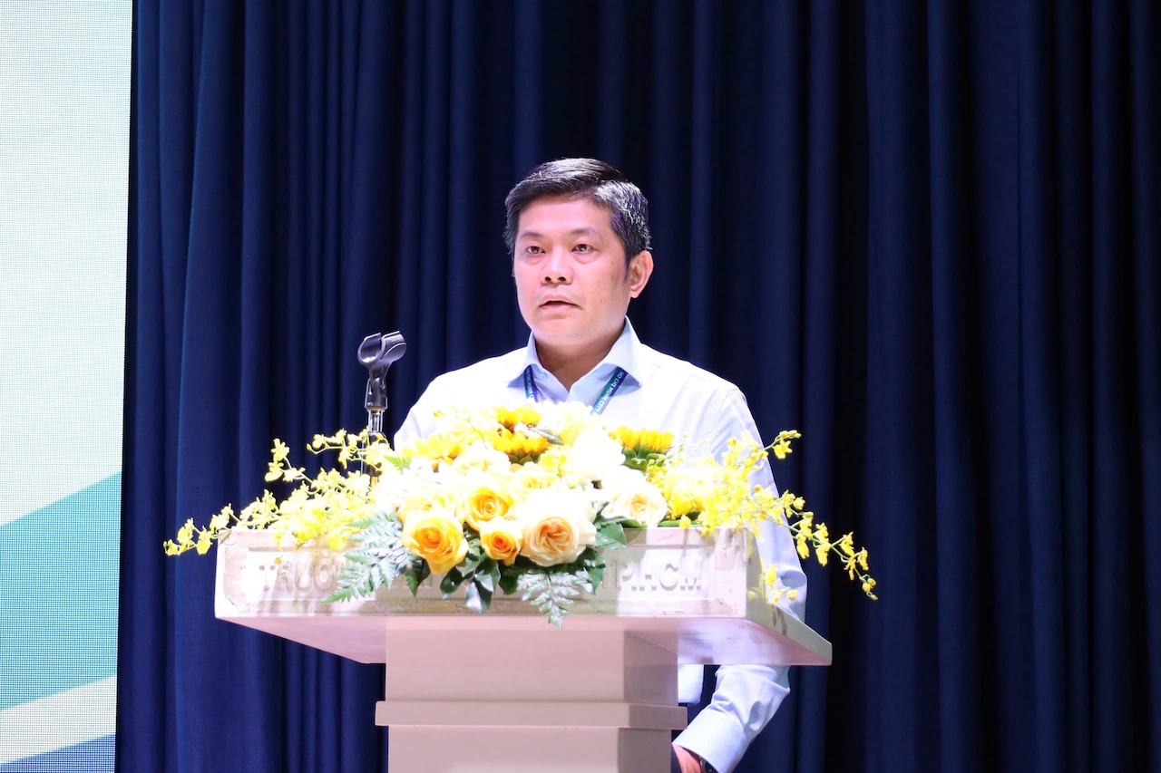 Tiếp đó, thay mặt Ban Giám hiệu, TS. Lê Trường Sơn trình bày Báo cáo tổng kết công tác năm học 2024–2025 và phương hướng năm học 2025–2026, nêu rõ những thành tựu nổi bật của Trường trong bối cảnh chuẩn bị kỷ niệm 50 năm truyền thống (1976–2026). Năm học qua, Trường hoàn tất việc thành lập Hội đồng trường nhiệm kỳ 2025–2030 được Bộ Giáo dục và Đào tạo công nhận theo Quyết định 2155/QĐ-BGDĐT; mở mới các ngành Kinh doanh quốc tế, Tài chính – Ngân hàng và chương trình Luật hình thức từ xa; triển khai hiệu quả kế hoạch tuyển sinh với hơn 3.000 sinh viên khóa 50 hệ chính quy, tỷ lệ nhập học gần 100%.