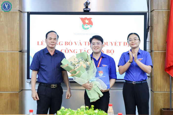 Tại buổi lễ, đại diện Ban công tác Đoàn và Thanh thiếu nhi Thành phố đã công bố Quyết định của Ban Thường vụ Thành Đoàn về việc chỉ định đ/c Đặng Thái Bình - Phó Bí thư phụ trách Đoàn Trường giữ chức vụ Quyền Bí thư Đoàn Trường Đại học Luật TP.HCM khóa XII nhiệm kỳ 2025 - 2027.