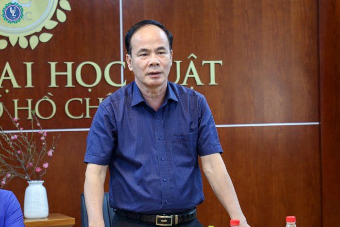 Phát biểu tại buổi lễ, PGS.TS Vũ Văn Nhiêm bày tỏ sự trân trọng và ghi nhận những đóng góp tích cực của đ/c Đặng Thái Bình, đồng thời, nhấn mạnh việc đảm nhận cương vị mới vừa là cơ hội, vừa là trách nhiệm đòi hỏi nỗ lực và kết quả rõ nét trong thời gian tới. Thay mặt Đảng ủy Trường, PGS.TS Vũ Văn Nhiêm khẳng định công tác cán bộ nói chung và công tác Đoàn nói riêng phải không ngừng thích ứng, đổi mới theo các quy định và yêu cầu mới. Tổ chức Đoàn đóng vai trò là lực lượng chính trị - xã hội xung kích, tiên phong, góp phần xây dựng các hoạt động từ Trung ương đến địa phương. Theo đó, mỗi cán bộ Đoàn cần từng bước rèn luyện, kế thừa và tiếp nối truyền thống tốt đẹp của Nhà trường. Với đặc thù đào tạo và tiên phong trong lĩnh vực pháp luật, PGS.TS Vũ Văn Nhiêm kỳ vọng đội ngũ cán bộ, đoàn viên, thanh niên sẽ đi đầu trong khoa học - công nghệ, chuyển đổi số, mạnh dạn đổi mới để sớm tạo ra những hoạt động, sản phẩm cụ thể theo từng tháng, từng quý, hướng đến các mốc ý nghĩa như kỷ niệm Ngày thành lập Đoàn 26/3 và sự kiện 50 năm truyền thống và 30 năm ngày mang tên Trường Đại học Luật TP.HCM và tháng 3/2026.