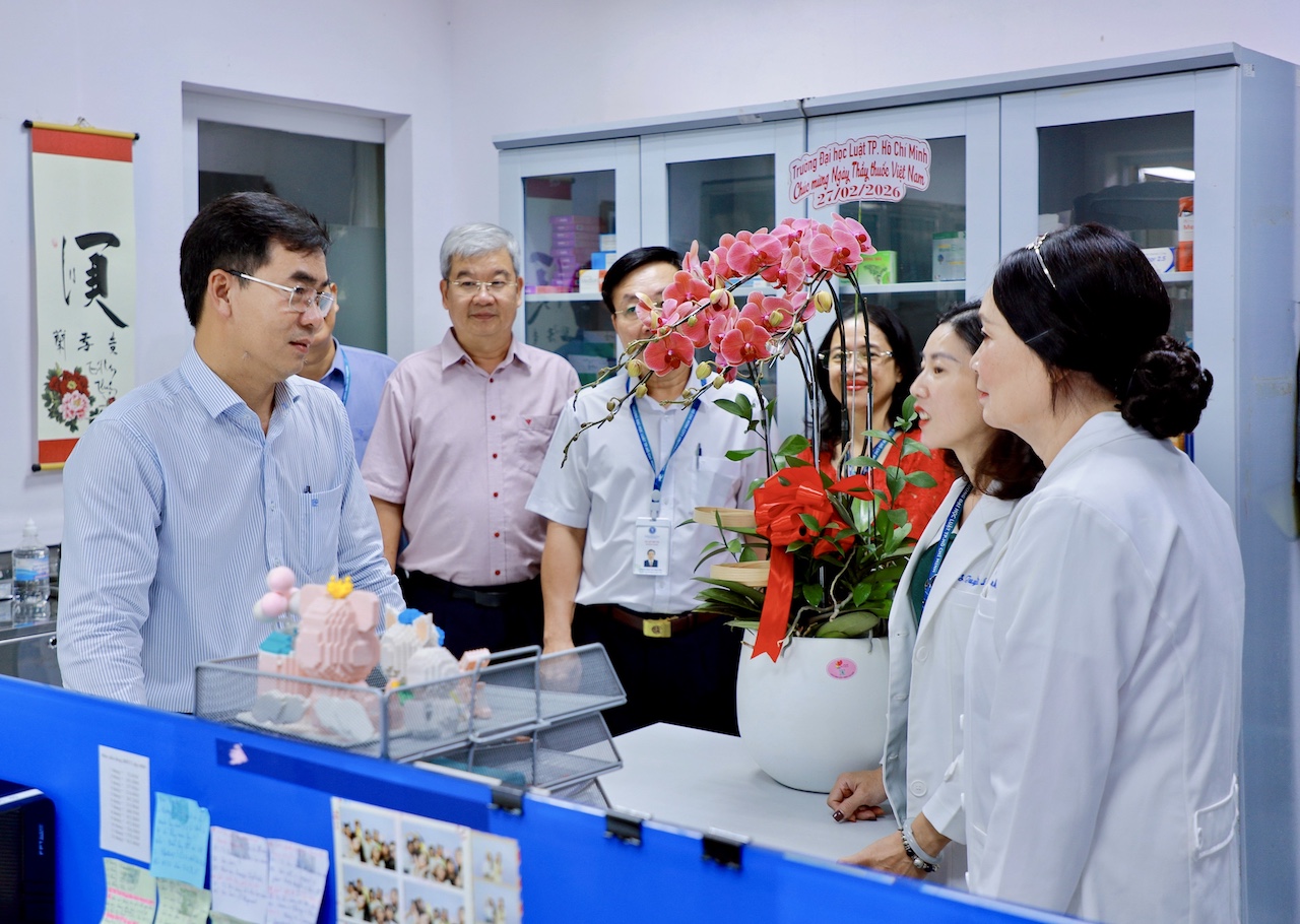 Nhân dịp kỷ niệm 71 năm Ngày Thầy thuốc Việt Nam (27/02/1955 – 27/02/2026), sáng ngày 27/02/2026, Lãnh đạo Trường Đại học Luật TP.HCM đã tổ chức buổi gặp mặt, tặng hoa chúc mừng các bác sĩ đang công tác tại Trạm y tế và Phòng Tư vấn sức khoẻ tâm thần và chăm sóc da của Nhà trường tại cơ sở số 2 Nguyễn Tất Thành.