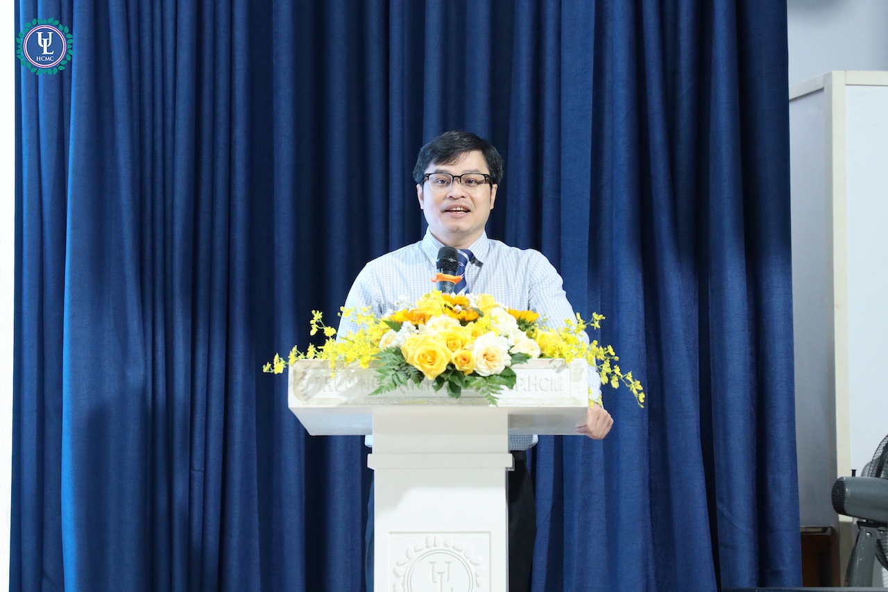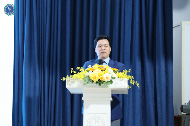 Phát biểu khai mạc buổi lễ, GS.TS. Đỗ Văn Đại – Phó Hiệu trưởng Nhà trường bày tỏ niềm vinh dự khi Trường Đại học Luật TP. HCM nhiều năm liền là địa điểm đăng cai vòng Bán kết Giải thưởng Sinh viên Nghiên cứu khoa học Euréka, thu hút đông đảo sinh viên đến từ các trường đại học trên khắp cả nước. Nếu như những năm trước, Nhà trường chủ yếu đảm nhiệm vai trò đăng cai ở lĩnh vực pháp lý, thì năm nay, việc mở rộng đăng cai sang lĩnh vực Kinh tế thể hiện rõ định hướng phát triển đa ngành, đa lĩnh vực mà Nhà trường đang theo đuổi. Nhân dịp này, GS.TS. Đỗ Văn Đại gửi lời chúc tốt đẹp đến quý thầy cô và các bạn sinh viên tham gia vòng thi, chúc các đội thi giữ vững tinh thần học hỏi, sáng tạo và đạt được những thành tích xuất sắc trên hành trình nghiên cứu khoa học.