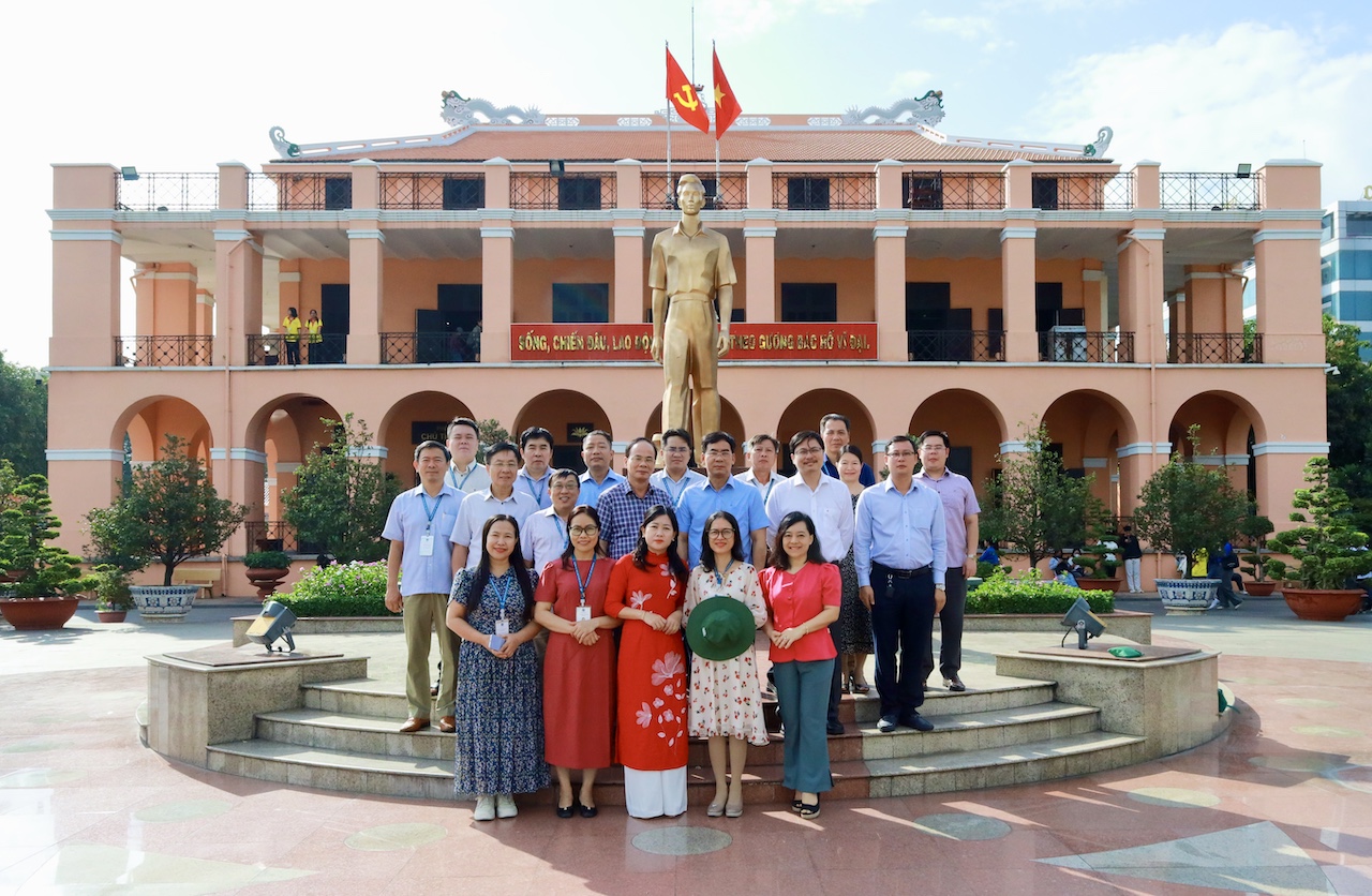 Các đồng chí lãnh đạo Trường Đại học Luật TP.HCM tham dự Lễ dâng hương trong không khí trang nghiêm, thành kính tại Bến Nhà Rồng – Bảo tàng Hồ Chí Minh
