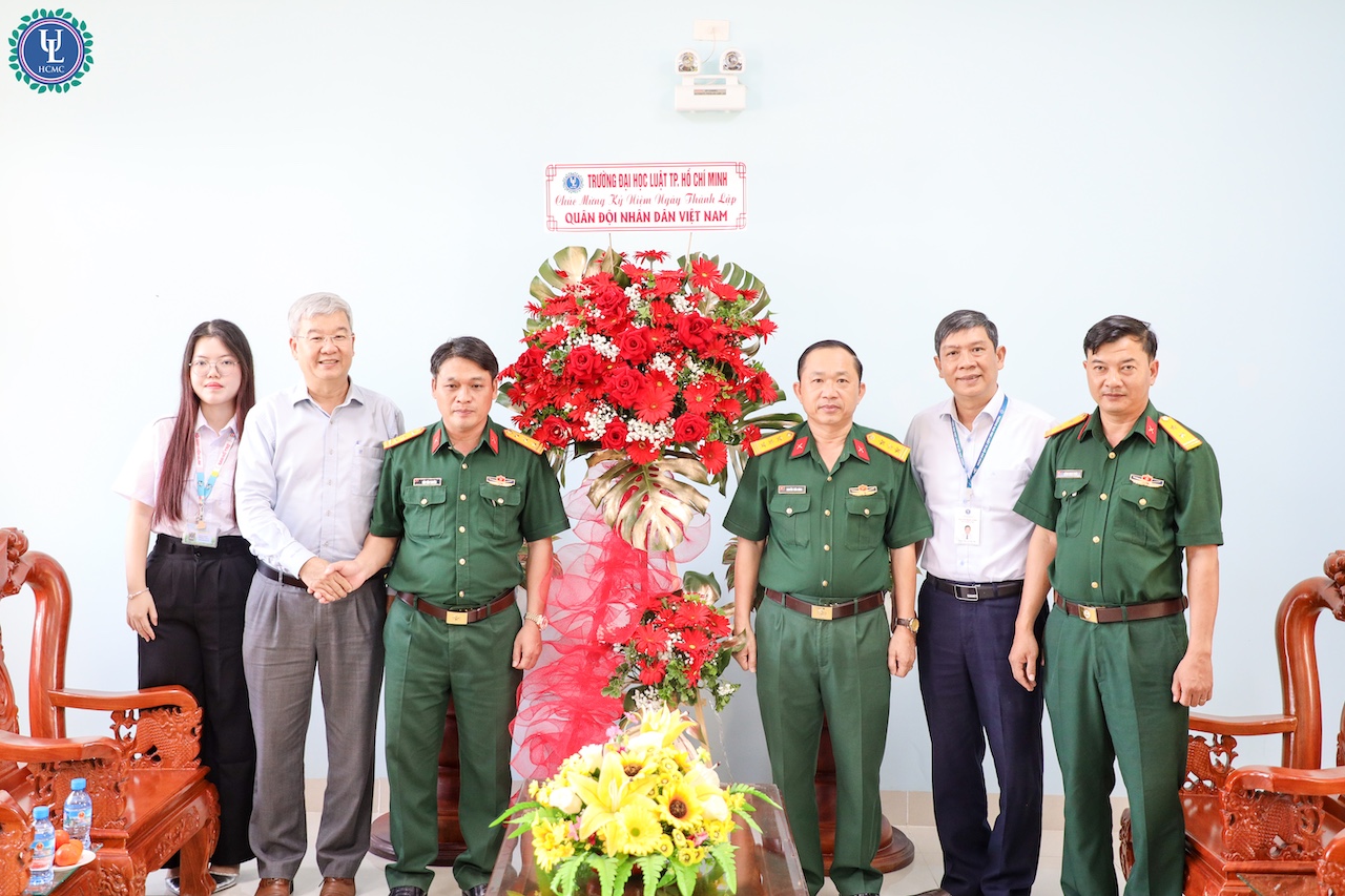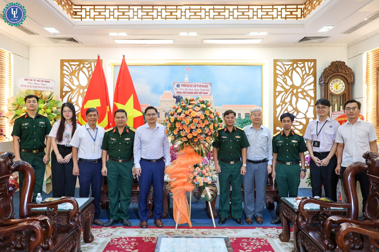 Nhân dịp kỷ niệm 81 năm Ngày thành lập Quân đội nhân dân Việt Nam (22/12/1944 - 22/12/2025) và 36 năm Ngày hội Quốc phòng toàn dân (22/12/1989 - 22/12/2025), đoàn công tác của Trường Đại học Luật TP.HCM đã tổ chức các hoạt động thăm, chúc mừng các đơn vị quân đội đóng quân trên địa bàn Thành phố Hồ Chí Minh. Đây là hoạt động mang ý nghĩa chính trị - xã hội sâu sắc, thể hiện tình cảm, trách nhiệm và sự tri ân của Nhà trường đối với lực lượng vũ trang nhân dân.