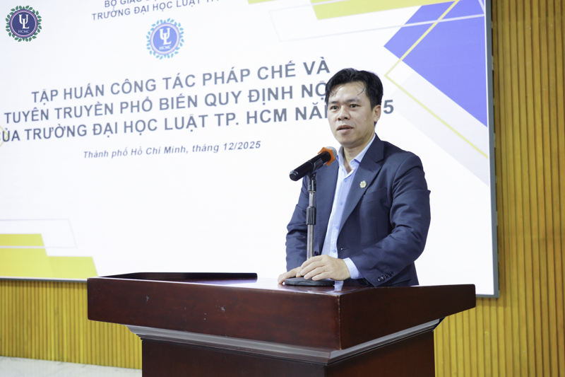 Nhằm cập nhật các quy định pháp luật mới và nâng cao chất lượng công tác pháp chế, góp phần tăng cường sự hiểu biết, thống nhất trong tổ chức thực hiện và nâng cao trách nhiệm tuân thủ pháp luật của các cán bộ, giảng viên, viên chức trong Nhà trường, vào sáng ngày 26/12 tại hội trường A.1002, cơ sở Nguyễn Tất Thành, Trường Đại học Luật TP.HCM đã tổ chức chương trình tập huấn công tác pháp chế năm 2025 và tuyên truyền, phổ biến quy định nội bộ của Trường. Chương trình đã thu hút sự quan tâm tham dự của 173 thầy cô tham dự trong đó có 42 lãnh đạo Trưởng phó các đơn vị và Trưởng bộ môn cùng 131 giảng viên và chuyên viên.