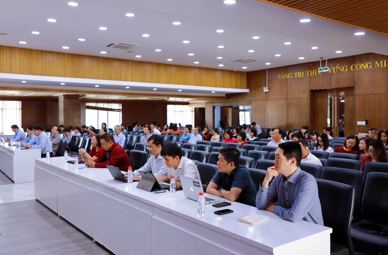 Đông đảo Đảng viên, viên chức Trường Đại học Luật TP.HCM tham dự Hội nghị tại Hội trường A.1002, cơ sở Nguyễn Tất Thành