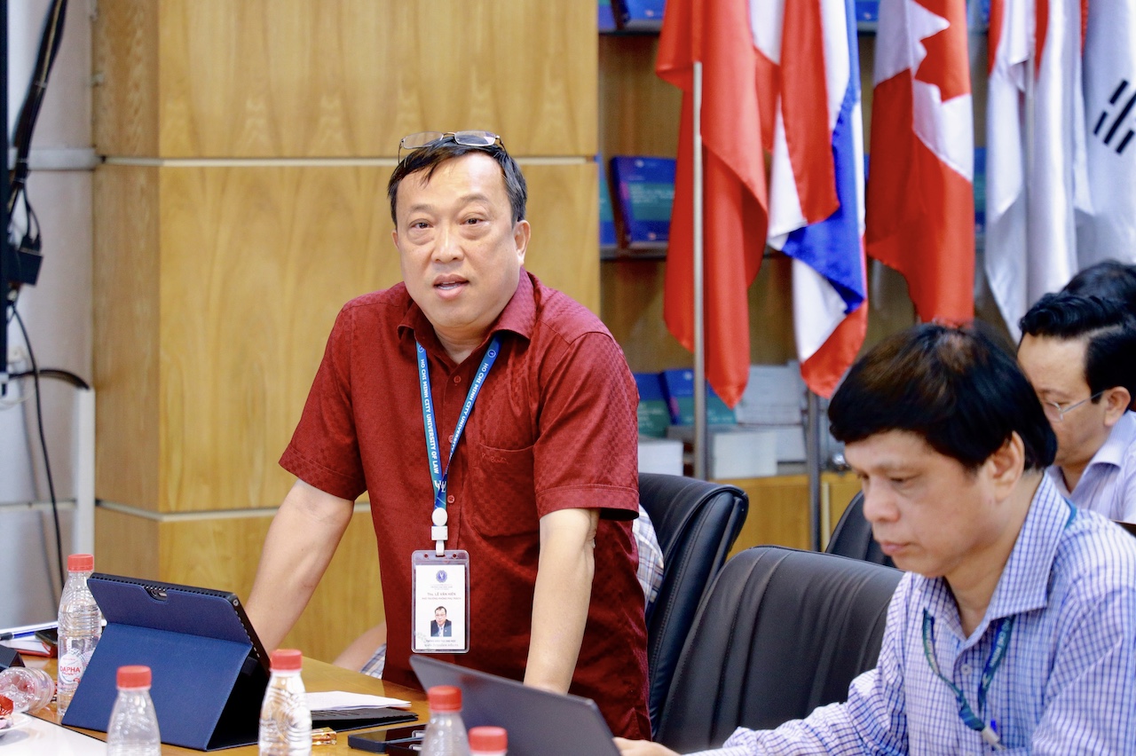 ThS. Lê Văn Hiển, Phó Trưởng phòng phụ trách Phòng Đào tạo Đại học phát biểu tại cuộc họp