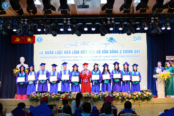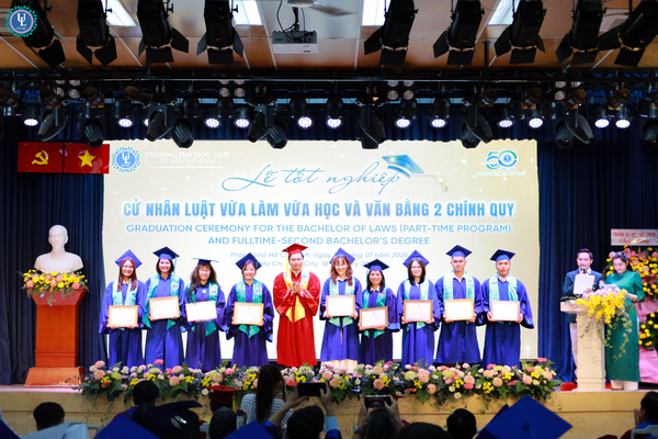 Sáng ngày 18/1/2026, tại Hội trường C.302, cơ sở Nguyễn Tất Thành, Trường Đại học Luật TP. HCM đã long trọng tổ chức Lễ tốt nghiệp và trao bằng Cử nhân cho sinh viên trình độ đại học hình thức đào tạo chính quy (văn bằng 2) và vừa làm vừa học.