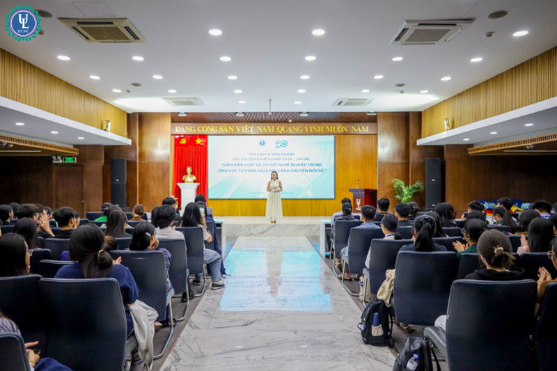 Nhằm mang đến cái nhìn toàn diện về cơ hội nghề nghiệp trong lĩnh vực tư pháp giữa xu thế số hóa, vào ngày 14/11, Trường Đại học Luật TP.HCM tổ chức toạ đàm hướng nghiệp “Sinh viên luật và cơ hội nghề nghiệp trong lĩnh vực tư pháp giữa bối cảnh chuyển đổi số” tại Hội trường A.1002, cơ sở Nguyễn Tất Thành.