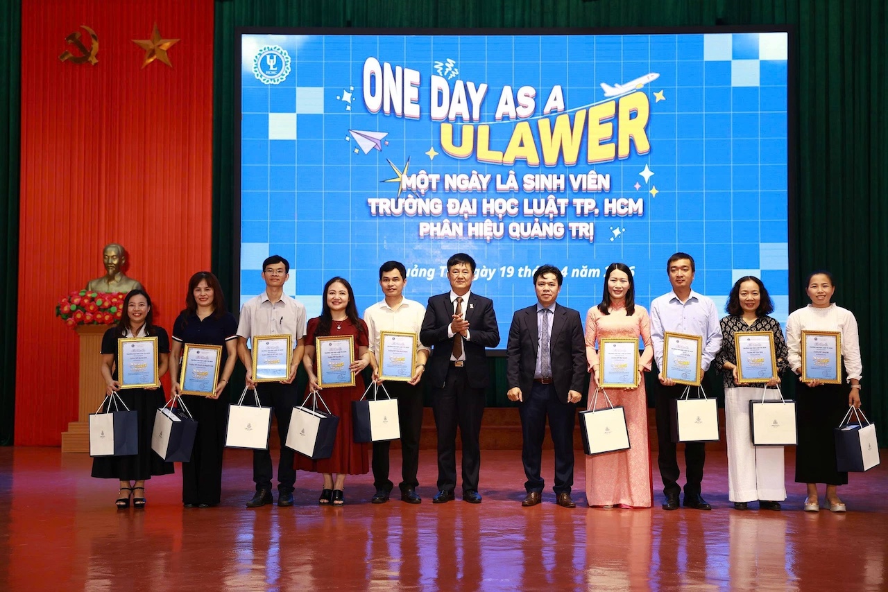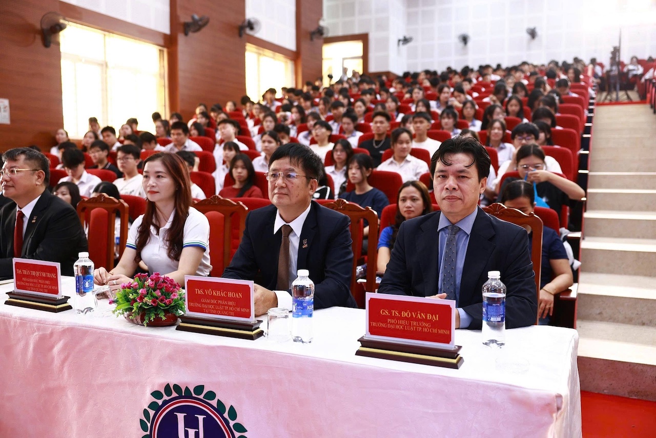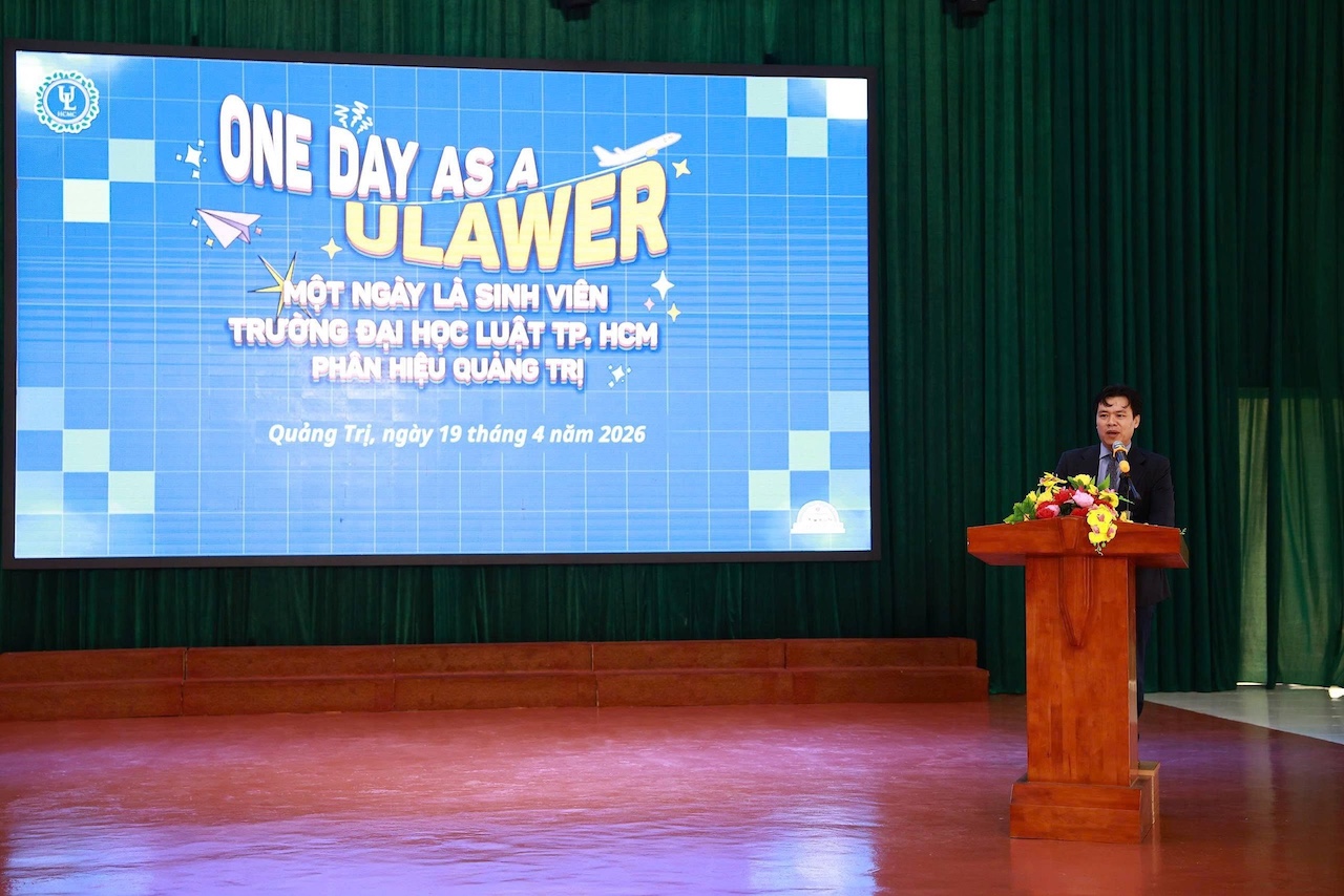 Ngày 19/04/2026, trong khuôn khổ chương trình "Một ngày là sinh viên Trường Đại học Luật TP. HCM – Phân hiệu Quảng Trị - One Day As A Ulawer” GS.TS. Đỗ Văn Đại – Phó Hiệu trưởng Trường Đại học Luật TP.HCM, người được Chính phủ Cộng hòa trao tặng Huân chương Cành cọ Hàn lâm (Ordre des Palmes académiques) cấp bậc Hiệp sĩ (Chevalier), đồng thời cũng là nhà khoa học được trao Giải thưởng “Tinh hoa Pháp lý - Legal Elite Award” 2026 hạng mục Giải Kiến tạo (Giải thưởng “Tinh hoa Pháp lý - Legal Elite Award” được Trường Đại học Luật TP.HCM phối hợp cùng Báo Pháp luật TP.HCM chính thức triển khai từ năm 2026, nhân dịp kỷ niệm 50 năm truyền thống và 30 năm mang tên Trường Đại học Luật TP.HCM) đã có những chia sẻ rất gần gũi với hơn 500 học sinh.