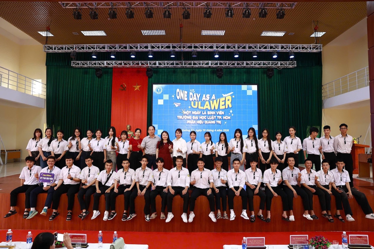 Ngày 19/04/2026, Phân hiệu Trường Đại học Luật TP. HCM tại Quảng Trị đã trở nên nhộn nhịp hơn bao giờ hết khi chào đón hơn 500 học sinh từ các trường THPT trên địa bàn tỉnh đến tham gia chương trình “Một ngày là sinh viên Trường Đại học Luật TP. HCM – Phân hiệu Quảng Trị - One Day As A Ulawer”. Đây không chỉ là một chuyến tham quan, mà là một hành trình thực tế giúp các em học sinh cuối cấp chạm tay vào giấc mơ nghề Luật.