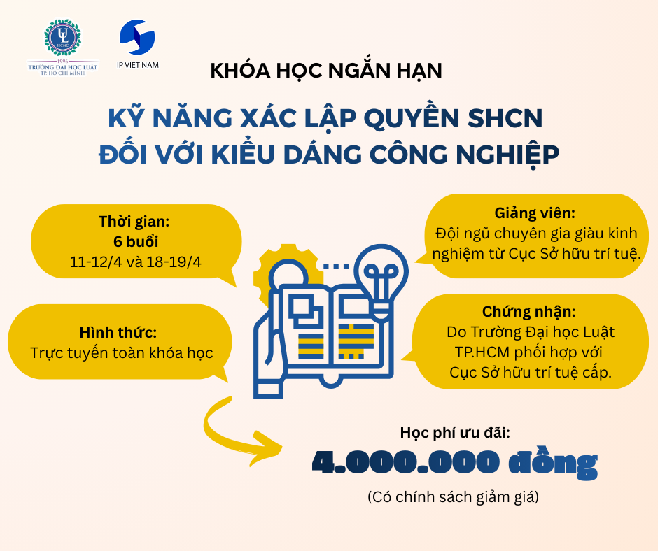 Nhằm trang bị những kỹ năng thực chiến nhất, Viện Sở hữu trí tuệ, Khởi nghiệp và Đổi mới sáng tạo – Trường Đại học Luật TP.HCM phối hợp cùng Cục Sở hữu trí tuệ chính thức khai giảng khóa đào tạo ngắn hạn: