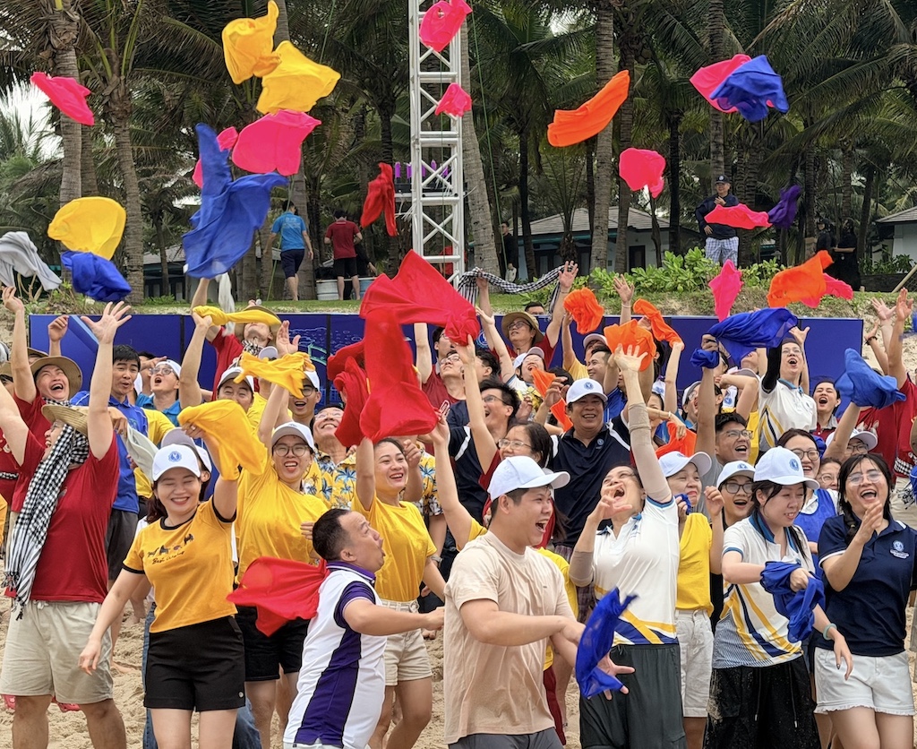 Later that afternoon, the beaches of Cam Ranh transformed into an arena of laughter, teamwork, and spirited competition. Teambuilding games unfolded with enthusiasm, testing coordination, endurance, and creativity among the teams. Professors accustomed to lecterns and lesson plans, along with administrative staff usually immersed in their offices, found themselves sprinting across the sand, cheering for their teammates, and celebrating shared victories. In those moments, distinctions between departments, generations, and professional roles seemed to dissolve, replaced by a sense of collective joy and belonging.