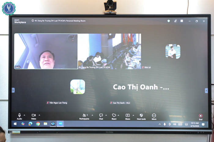 Vào sáng ngày 16/4/2026, tại phòng họp A.803, cơ sở Nguyễn Tất Thành, Trường Đại học Luật TP. HCM đã diễn ra cuộc họp Hội đồng nghiệm thu cấp cơ sở đề tài KHCN cấp Bộ với mã số B2024 - LPS - 02 chủ đề "Phòng ngừa và xử lý các tội vi phạm quy định pháp luật về bảo vệ động vật hoang dã" do PGS.TS. Lê Huỳnh Tấn Duy làm chủ nhiệm.