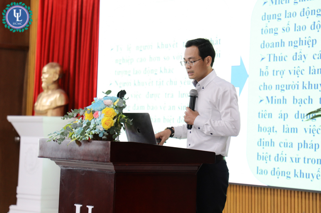 Về phía Trường Đại học Luật TP.HCM có TS. Lê Trường Sơn - Hiệu trưởng Nhà trường; GS.TS Đỗ Văn Đại - Phó Hiệu trưởng Nhà trường; TS. Lê Thị Thuý Hương - Trưởng phòng NCKH&HTPT; TS. Nguyễn Xuân Quang - Trưởng Khoa Luật Dân sự; TS. Nguyễn Văn Tiến - Phó Trưởng Khoa Luật Dân sự; TS. Lê Vĩnh Châu - Phó Trưởng Khoa Luật Dân sự; TS. Nguyễn Thị Bích – Trưởng Bộ môn Luật Lao động, Kkhoa Luật Dân sự cùng các giảng viên các khoa và đông đảo học viên, sinh viên có quan tâm.