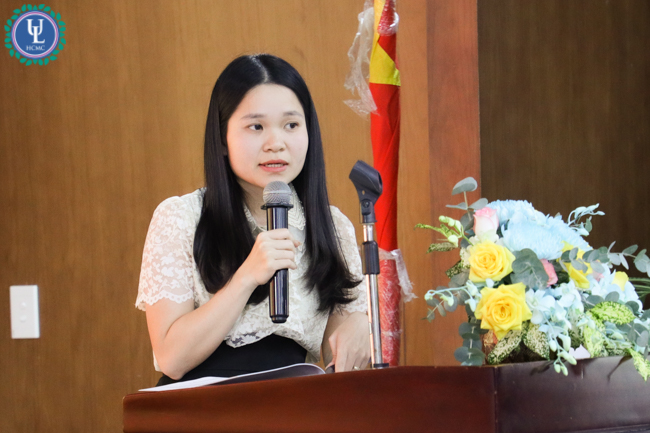 ThS. Lê Ngọc Anh - Trường Đại học Luật TP.HCM đại diện trình bày tham luận “Kinh nghiệm quốc tế về vai trò của đại diện giới sử dụng lao động trong phát triển việc làm bền vững