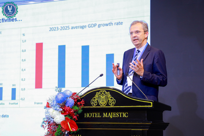 Ông Thierry Bonneau - Giáo sư Luật, Trưởng các Chương trình về Tài chính và Ngân hàng, Giám đốc Viện Luật So sánh trình bày tham luận “Điều gì tạo nên sức hấp dẫn của một trung tâm tài chính? Một số quan sát từ kinh nghiệm của Pháp và Châu Âu”