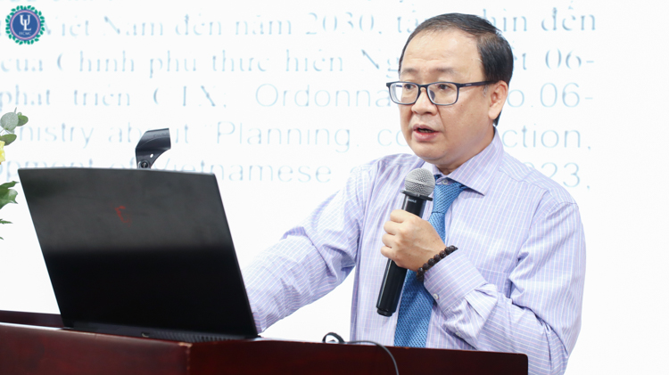 PGS.TS. Lưu Quốc Thái - GV Khoa Luật Thương mại trình bày tham luận “Cơ sở pháp lý cho việc thực hiện dự án công trình xanh ở Việt Nam”