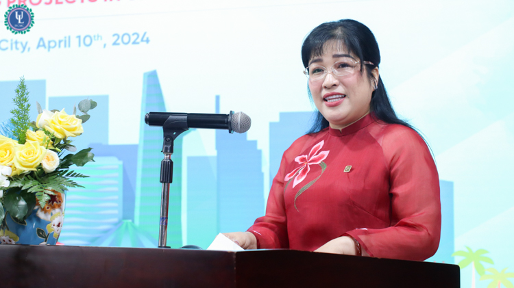 ThS. Lưu Thị Thanh Mẫu - PCT Hội Doanh nhân Trẻ Việt Nam, Phó Chủ tịch Hiệp hội Bất Động sản TP.HCM, Tổng giám đốc Phúc Khang Corporation phát biểu khai mạc Hội thảo
