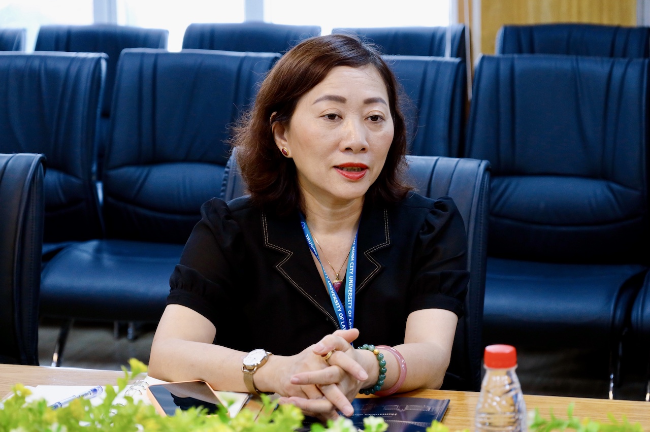 TS. Lê Thị Thúy Hương, Trưởng phòng KHCN&HTPT trao đổi tại buổi làm việc