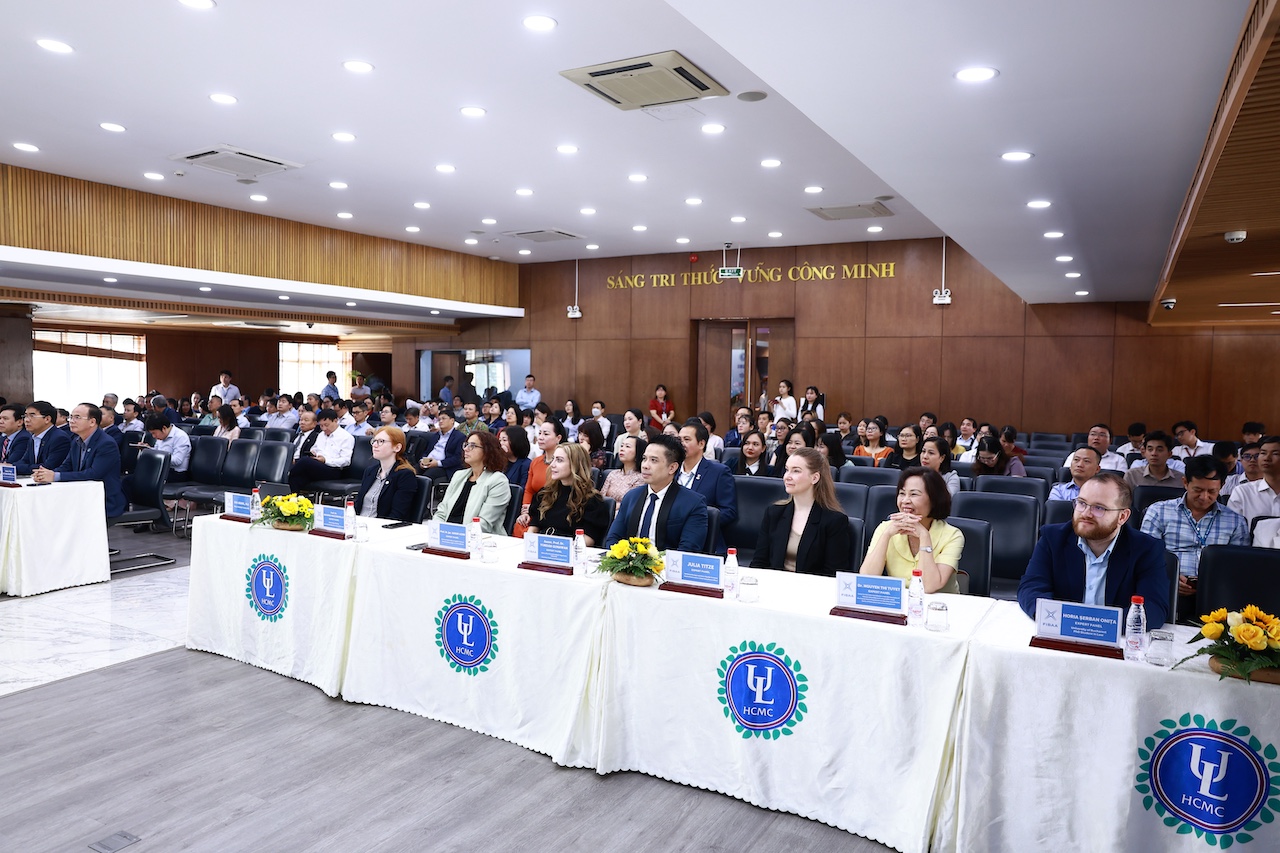Về phía Trường Đại học Luật TP.HCM có sự hiện diện PGS.TS. Vũ Văn Nhiêm – Bí thư Đảng ủy; TS. Lê Trường Sơn – Phó Bí thư Đảng ủy, Hiệu trưởng; GS.TS. Đỗ Văn Đại và PGS.TS. Trần Việt Dũng – Phó Hiệu trưởng, cùng lãnh đạo các đơn vị, giảng viên và người học của Nhà trường.