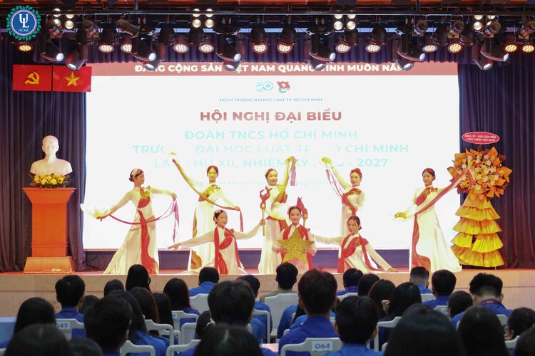Tiết mục văn nghệ khai mạc Hội nghị Đại biểu Đoàn TNCS Hồ Chí Minh Trường Đại học Luật TP.HCM lần thứ XII, nhiệm kỳ 2025 - 2027