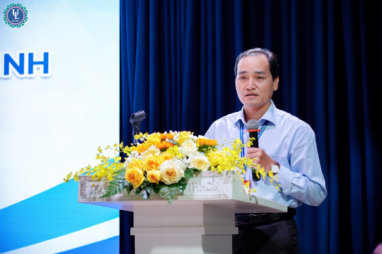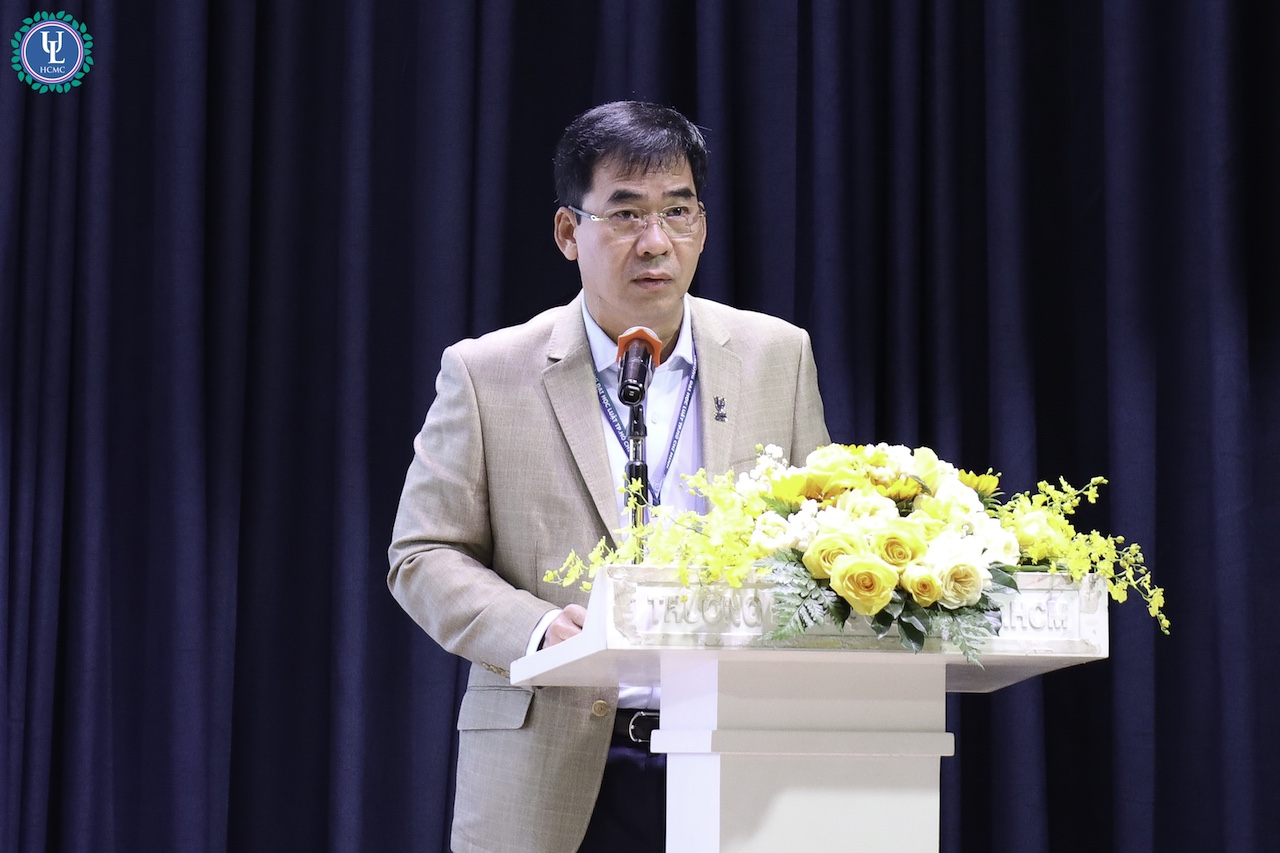 TS. Phan Anh Tuấn – Trưởng Phòng Tổ chức nhân sự báo cáo kết quả công tác thi đua khen thưởng của Nhà trường năm học 2024 – 2025
