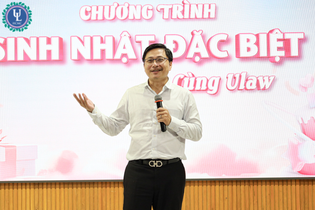Phát biểu tại chương trình, PGS.TS. Trần Việt Dũng - Phó Hiệu trưởng Nhà Trường chia sẻ rằng chương trình trao quà sinh nhật được tổ chức với mong muốn các bạn sẽ đoàn kết với nhau, hiểu được tinh thần của ULAW và các bạn sẽ có tinh thần học tập tốt nhất trong những năm học và rèn luyện tại trường. Đồng thời, thầy còn gửi đến các bạn sinh viên lời chúc sức khỏe và những lời động viên sâu sắc nhân dịp sinh nhật này.