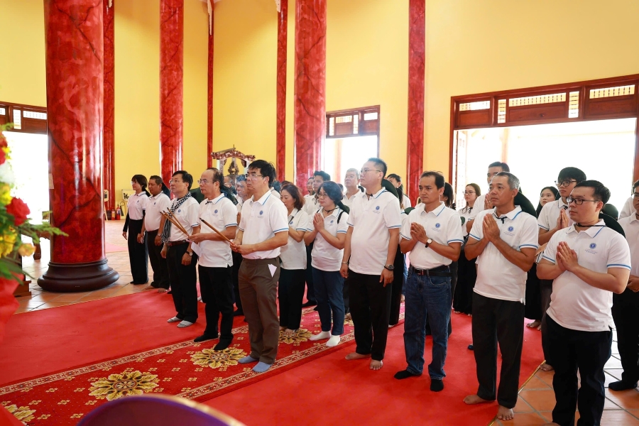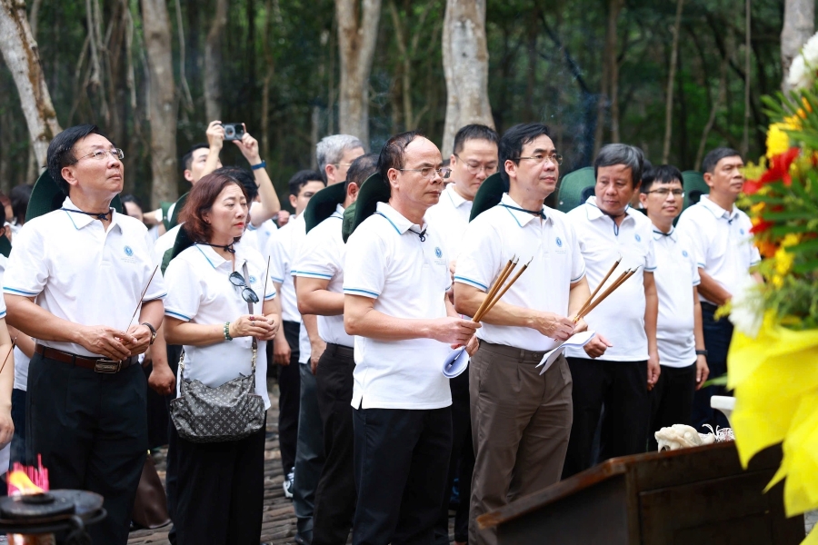 Đoàn công tác cũng đã tổ chức Lễ dâng hương, đặt vòng hoa và dành phút mặc niệm trước Tượng đài Tổ quốc ghi công, tưởng nhớ và tri ân công lao to lớn của các Anh hùng liệt sĩ. Đây là dịp để mỗi cán bộ, đảng viên và viên chức Nhà trường cùng ôn lại lịch sử hào hùng, thấm nhuần sâu sắc ý nghĩa của sự hy sinh, từ đó củng cố lý tưởng cách mạng, nâng cao ý thức trách nhiệm trong công cuộc xây dựng và bảo vệ Tổ quốc.
