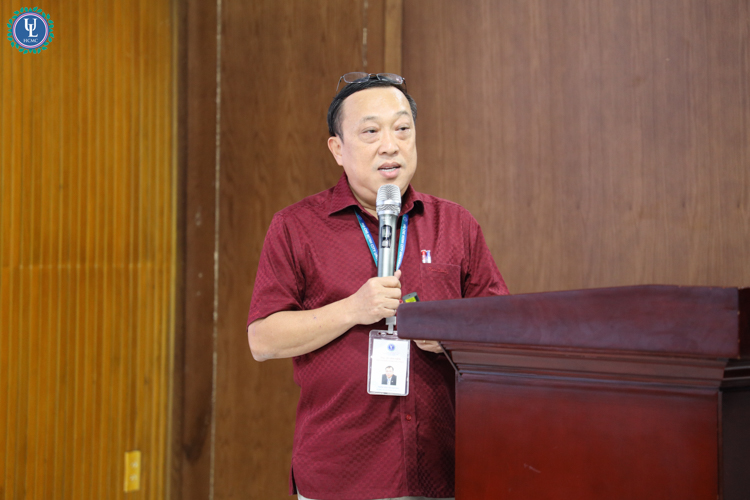 ThS. Lê Văn Hiển báo cáo công tác tuyển sinh trong năm 2025 và thông tin định hướng phương án tuyển sinh trong năm 2026