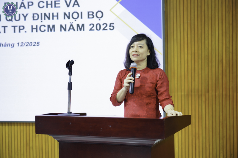 Nhằm cập nhật các quy định pháp luật mới và nâng cao chất lượng công tác pháp chế, góp phần tăng cường sự hiểu biết, thống nhất trong tổ chức thực hiện và nâng cao trách nhiệm tuân thủ pháp luật của các cán bộ, giảng viên, viên chức trong Nhà trường, vào sáng ngày 26/12 tại hội trường A.1002, cơ sở Nguyễn Tất Thành, Trường Đại học Luật TP.HCM đã tổ chức chương trình tập huấn công tác pháp chế năm 2025 và tuyên truyền, phổ biến quy định nội bộ của Trường. Chương trình đã thu hút sự quan tâm tham dự của 173 thầy cô tham dự trong đó có 42 lãnh đạo Trưởng phó các đơn vị và Trưởng bộ môn cùng 131 giảng viên và chuyên viên.
