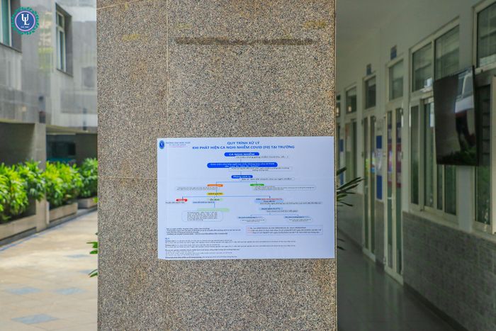 Đồng thời, Nhà trường cũng tăng cường các hoạt động truyền thông như: Banner chào mừng “Back to school”; Phát thanh tuyên truyền phòng chống Covid – 19; Công bố quy trình rửa tay, đo thân nhiệt trước khi vào trường và Quy trình xử lý khi phát hiện ca nghi nhiễm F0 nhằm đảm bảo an toàn và tạo bầu không khí háo hức, vui tươi chào đón sinh viên khi về trường học trực tiếp.
