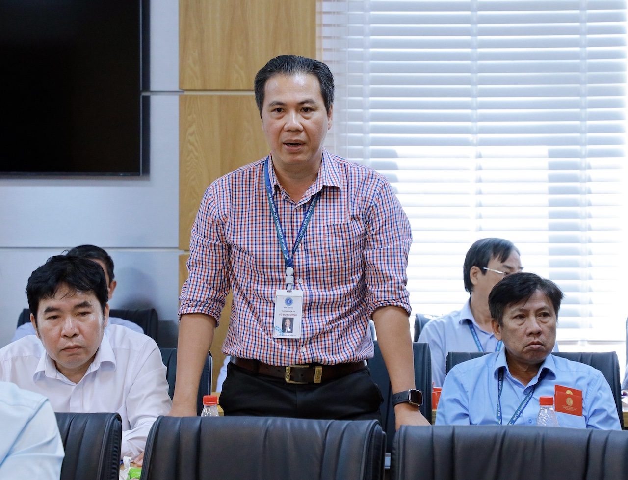ThS. Vũ Duy Cương - Trưởng Phòng Đảm bảo chất lượng và Khảo thí phát biểu tại cuộc họp