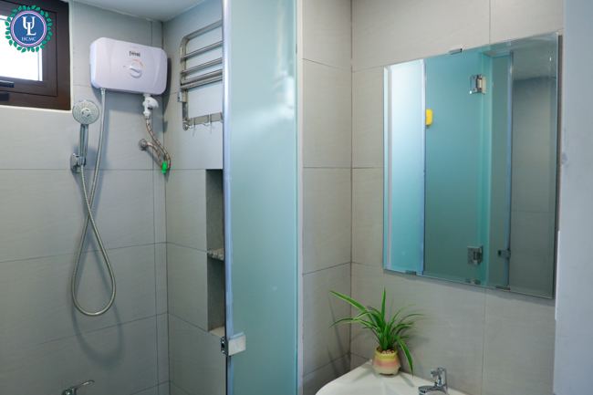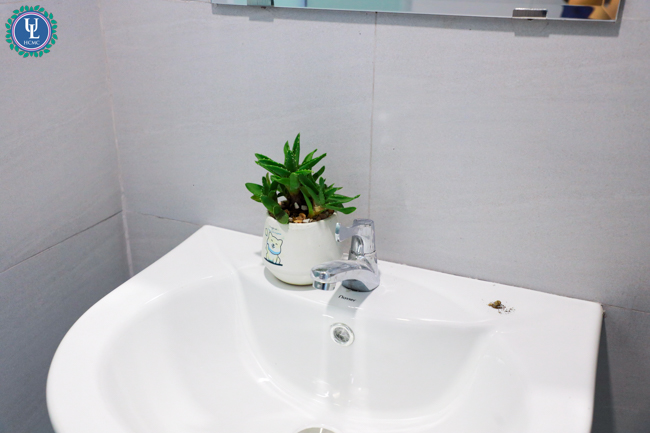 Nhà vệ sinh được bố trí gọn gàng và sạch sẽ
