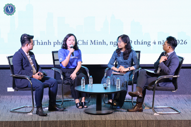 Các diễn giả tham gia tọa đàm có TS. Đinh Thị Chiến - Phụ trách Trung tâm tư vấn pháp luật và Phục vụ cộng đồng, Trường Đại học Luật TP.HCM; Bà Hoàng Thị Kim Dung - Giám đốc quốc gia, Quỹ đầu tư Genesia Ventures Việt Nam; ThS.LS. Lê Thanh Hoàng Trường - Cố vấn pháp lý của khu vực, Tập đoàn Change until Change.