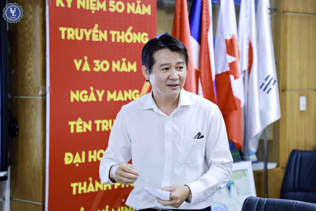 ThS. Lê Văn Hiển - Phó Trưởng phòng phụ trách Phòng Đào tạo Đại học phát biểu tại buổi làm việc