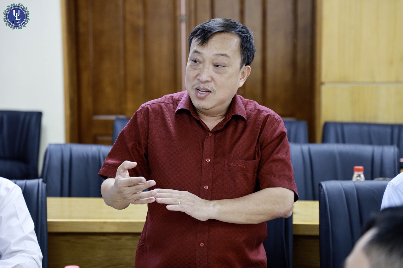PGS.TS Vũ Văn Nhiêm - Bí thư đảng ủy Trường Đại học Luật TP.HCM phát biểu tại buổi làm việc