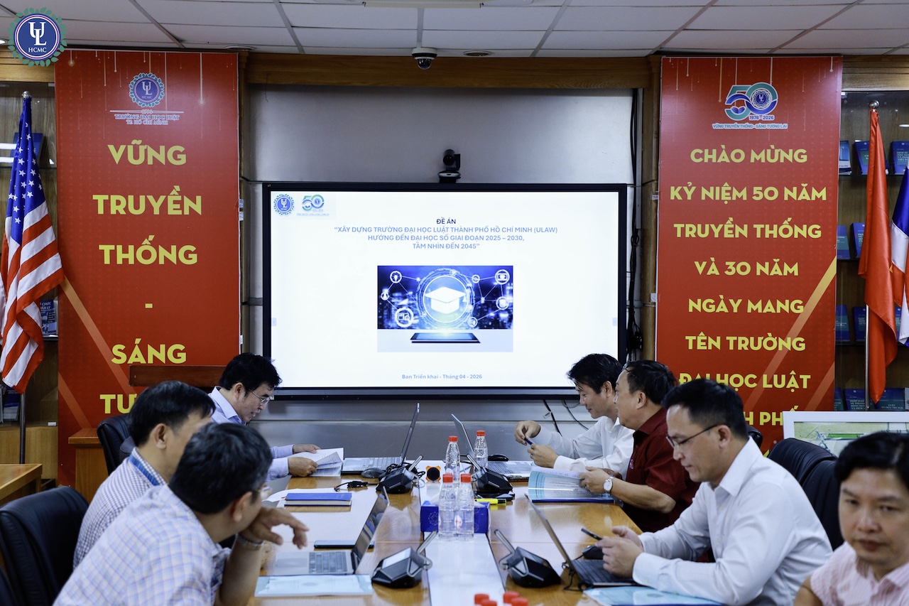 Ngày 08/04/2026, Nhà trường đã tổ chức phiên làm việc chuyên môn để thảo luận về Đề án “Xây dựng Trường Đại học Luật TP. Hồ Chí Minh hướng đến Đại học số giai đoạn 2025–2030, tầm nhìn đến 2045”. Tại đây, TS. Lê Trường Sơn – Hiệu trưởng Nhà trường nhấn mạnh: Chuyển đổi số là cơ hội để ULAW tái cấu trúc toàn diện mô hình vận hành theo hướng hiện đại, minh bạch và hiệu quả.