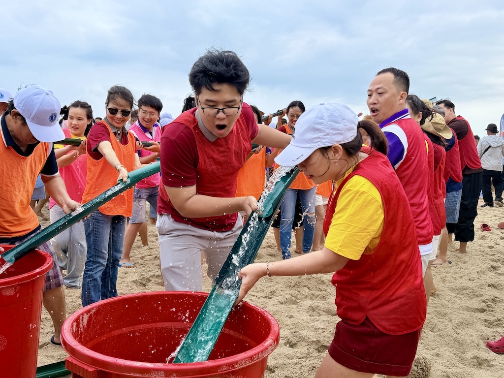 Later that afternoon, the beaches of Cam Ranh transformed into an arena of laughter, teamwork, and spirited competition. Teambuilding games unfolded with enthusiasm, testing coordination, endurance, and creativity among the teams. Professors accustomed to lecterns and lesson plans, along with administrative staff usually immersed in their offices, found themselves sprinting across the sand, cheering for their teammates, and celebrating shared victories. In those moments, distinctions between departments, generations, and professional roles seemed to dissolve, replaced by a sense of collective joy and belonging.